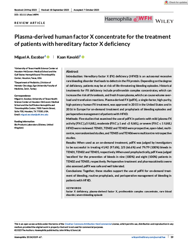 - Perioperative management of bleeding in patients with mild, moderate and severe hereditary factor X deficiency
